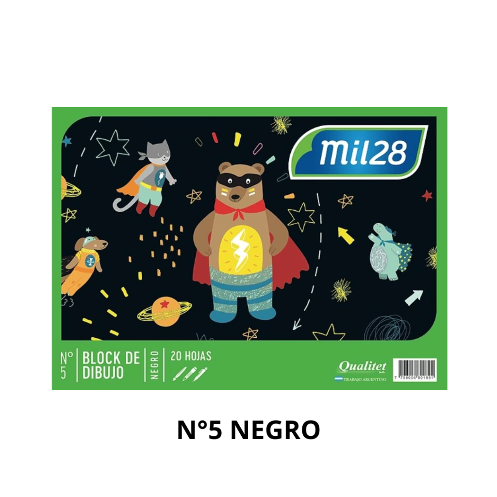 BLOCK DE DIBUJO ESCOLAR N.5 COLOR 0 NEGRO X 20 HJS.