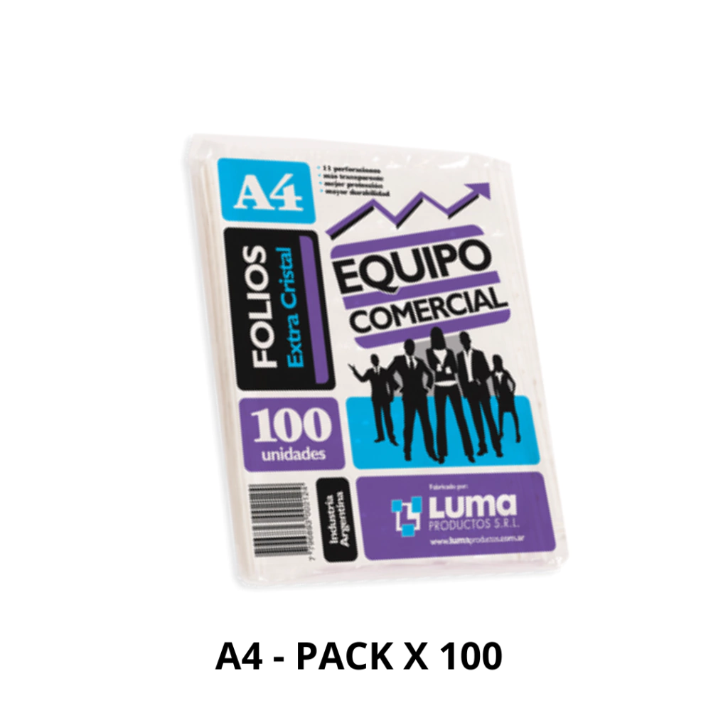 FOLIO (A4) CRISTAL (EQUIPO COMERCIAL) LUMA PACK X 100 UNID.