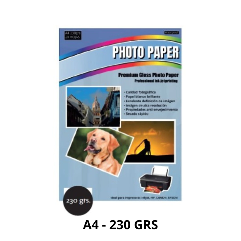 PAPEL FOTOGRAFICO (A4) C/BRILLO 230 GRM. PACK X 20 U.